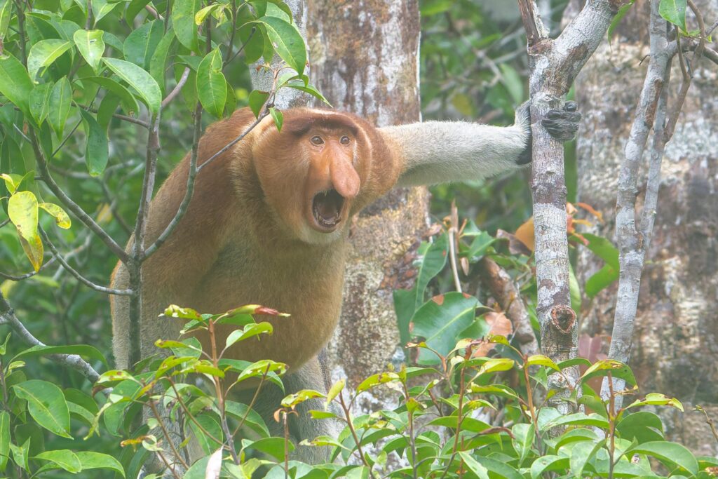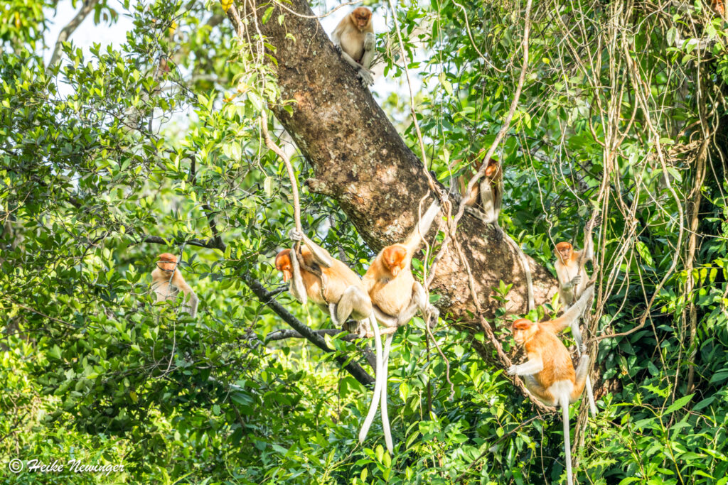 Am Nachmittag geht es mit einem Boot nach Pulau Bakut. Eine Insel, auf der Nasenaffen leben, die einem Rehabilitierungsprogramm entstammen. Die Population hat sich mehr als verdoppelt und eine Zufütterung durch den Menschen ist nicht mehr notwendig. Ein gelungenes Projekt.