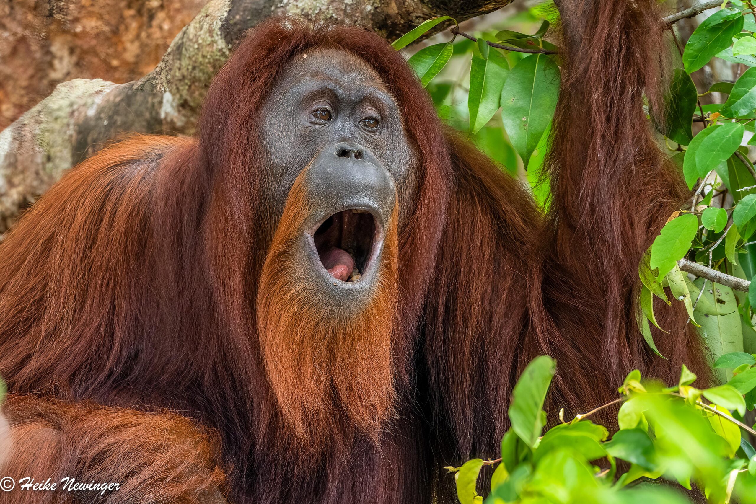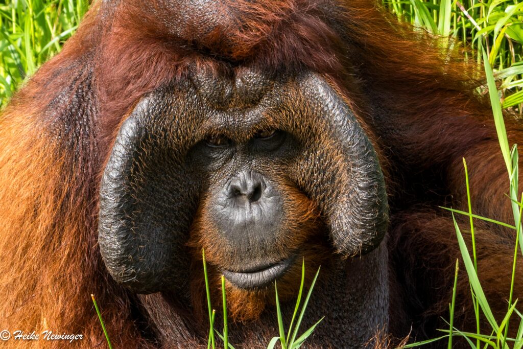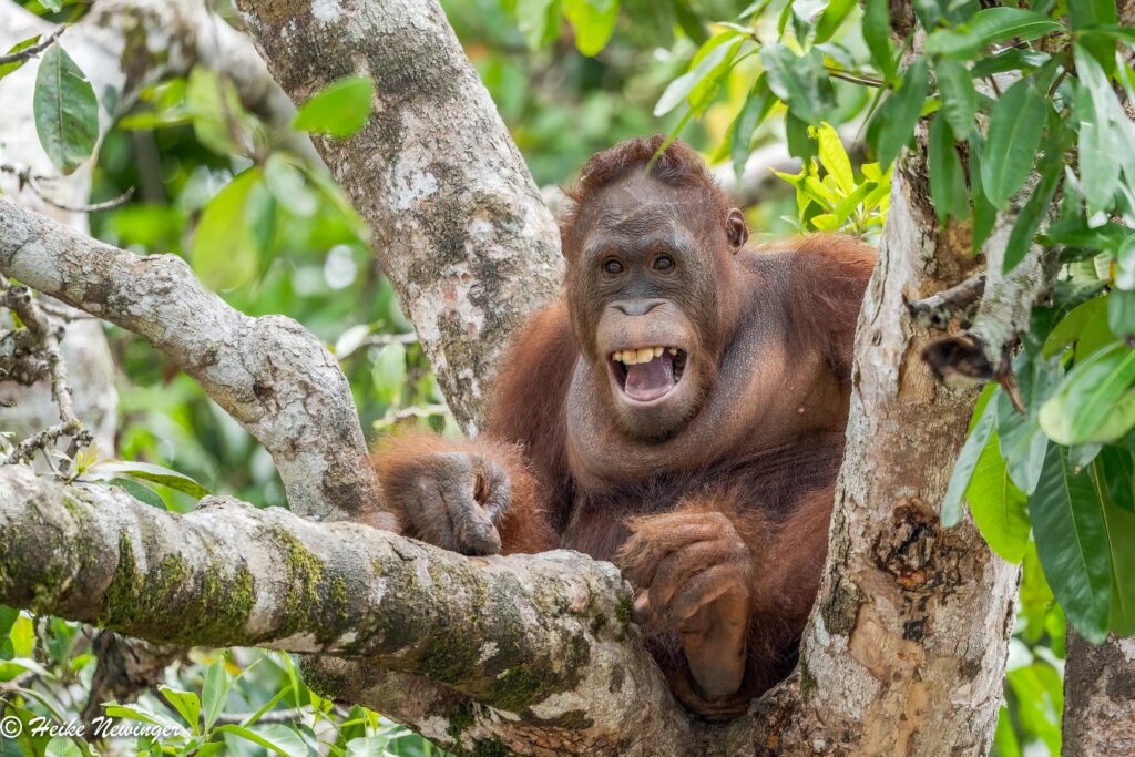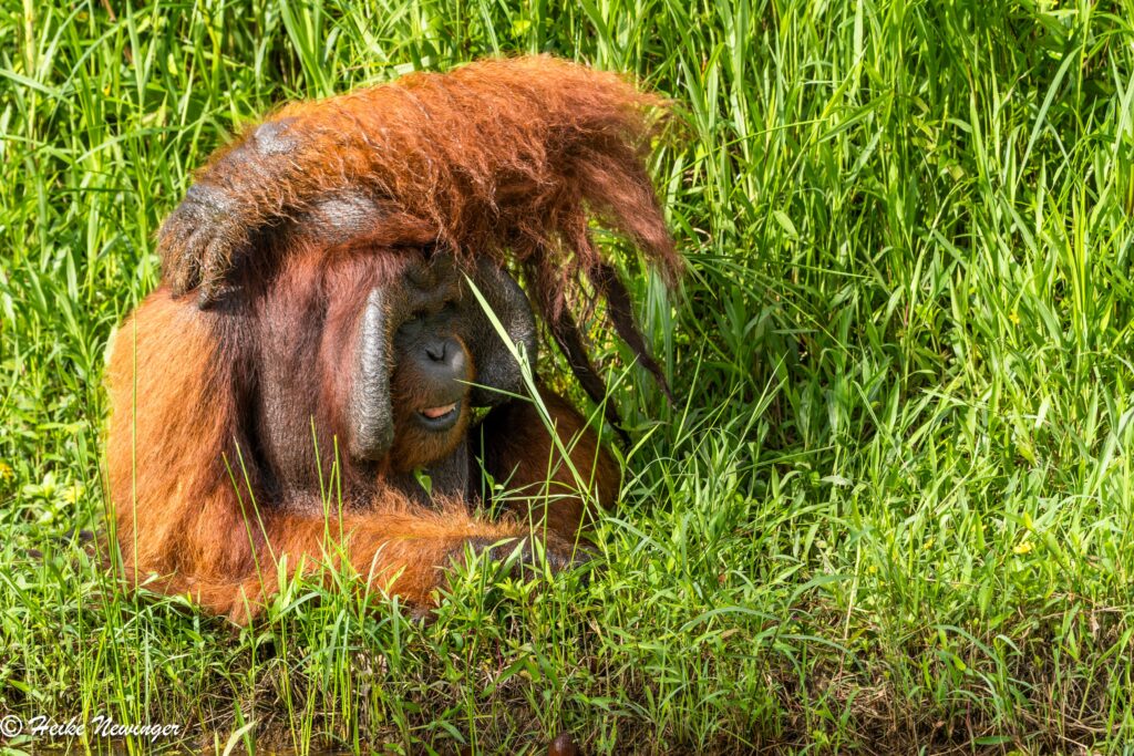 Auf den Inseln leben Orang-Utans, die im letzten Stadium der Auswilderung sind. Die Inseln werden von Menschen nur zum Bringen und Abholen von Orang-Utans betreten, ansonsten leben Sie hier alleine. Viele Touristen kommen ebenfalls nicht her, ich bin heute der einzige Gast. Mit einem kleinen Boot umrunden wir die Inseln und ich habe so viel Glück. Insgesamt sehe ich 10 ausgewachsene Waldmenschen und 2 Babys. Eigentlich sind professionelle Kameras verboten, aber da wir ohne Ranger unterwegs sind, packe ich die Kamera natürlich aus.
