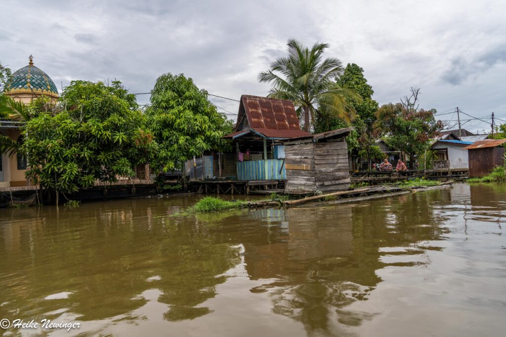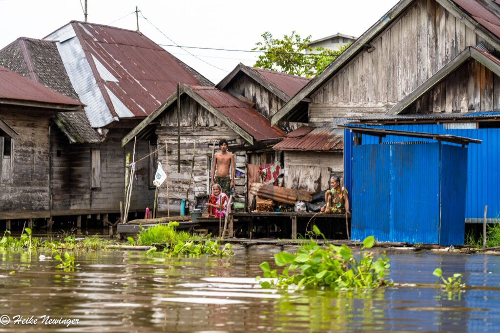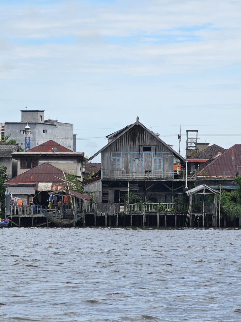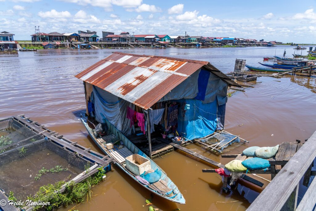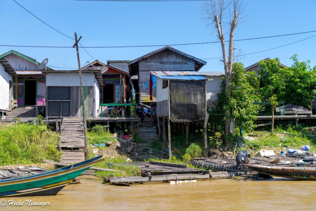 Viele Menschen leben hier am und auf dem Fluss in Häusern aus Holz und Wellblech auf Pfählen. Von der Terrasse aus führt ein kleiner Steg zur Toilette, eine kleine „Hütte“ in deren Boden ein Loch ist. 2 Meter weiter befindet sich oft die Badestelle der Bewohner. Das Leben hier findet überwiegend auf und im Wasser statt. Die Kinder planschen nachmittags im Fluss, quasi zwischen den Toiletten. Ein sehr ungewohnter Anblick für einen Europäer, vermutlich in etwa so ungewohnt wie eine Alleinreisende Touristin für sie.