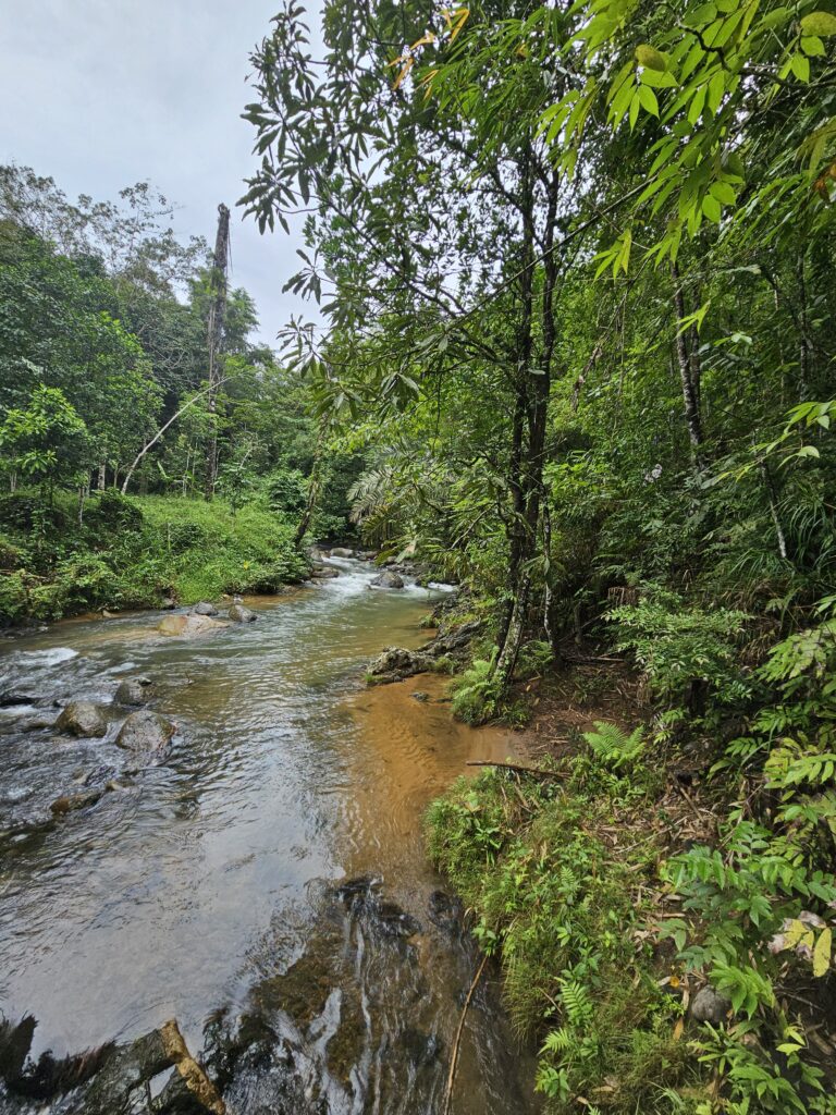 Am Morgen wandern wir eine Weile durch die Wälder und durchqueren 2 Dörfer der Dayak, die hier allerdings nicht mehr so traditionell leben. Das Langhaus wird nur noch für Zeremonien genutzt. Dafür liegt überall Müll herum – ein generelles Problem in Kalimantan. Bei vielen Bildern kann man froh sein, dass es hier keine Gerüche gibt.