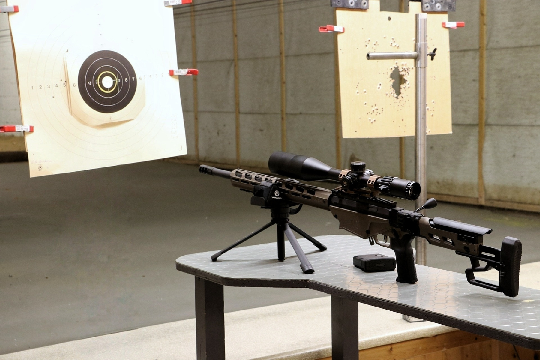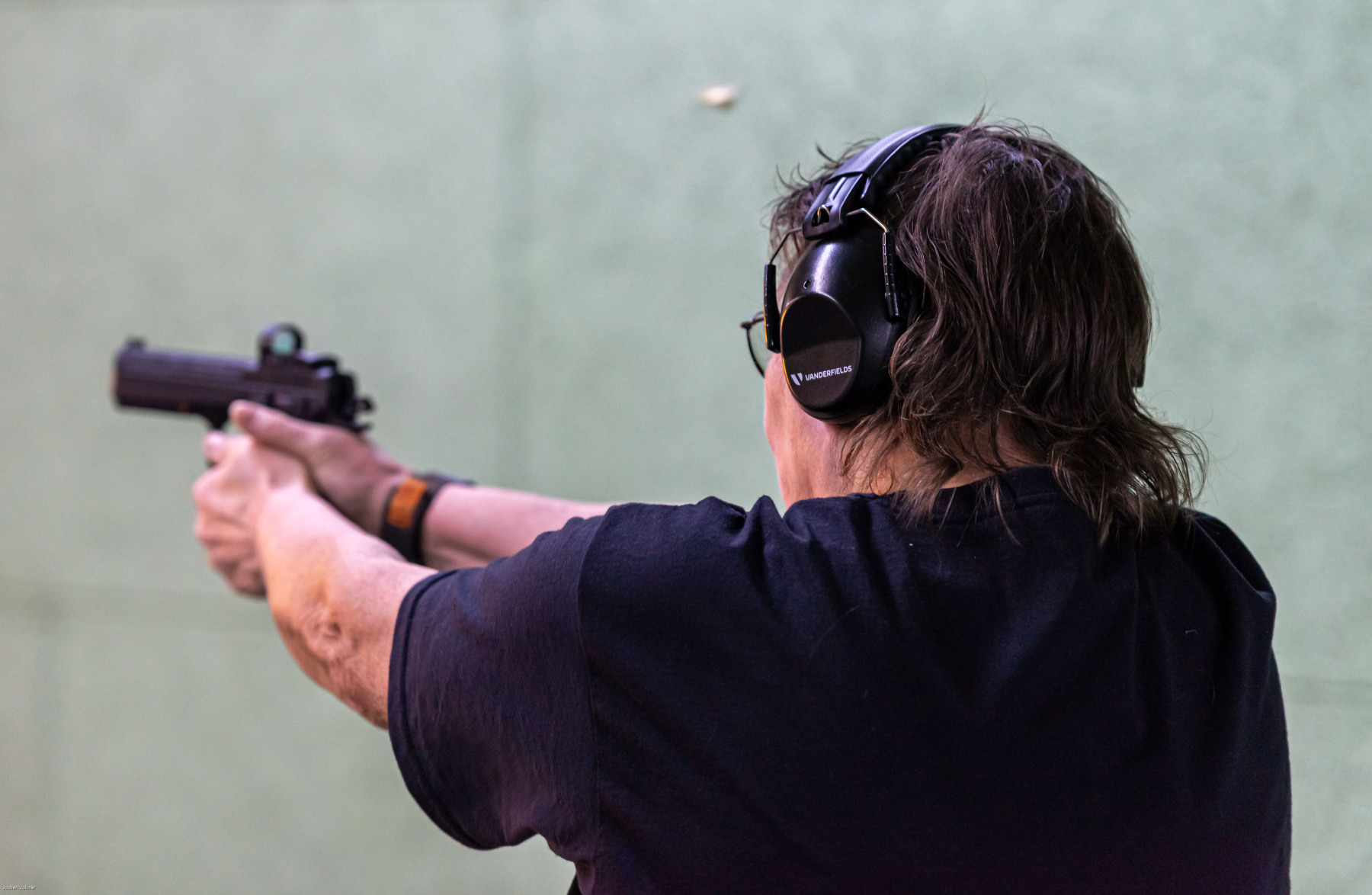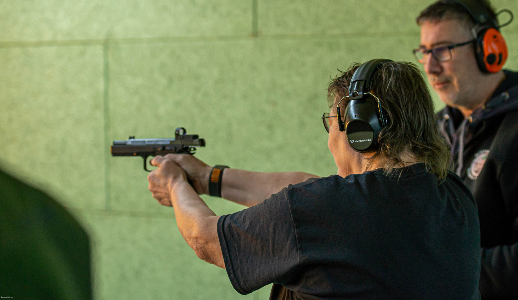 Unter Aufsicht äußerst sympathischer und erfahrener Schütz:innen testeten wir an drei unterschiedlichen Ständen eine breite Palette an Waffen: vom Luftgewehr und der Luftpistole bis hin zu den größeren Kalibern .223 und 9 mm, als Kurz- wie auch als Langwaffe. Für absolute Anfänger schlugen wir uns dabei auf den unterschiedlichen Distanzen überraschend gut: enge Streukreise, erste Zehner und viele Treffer im Schwarzen.