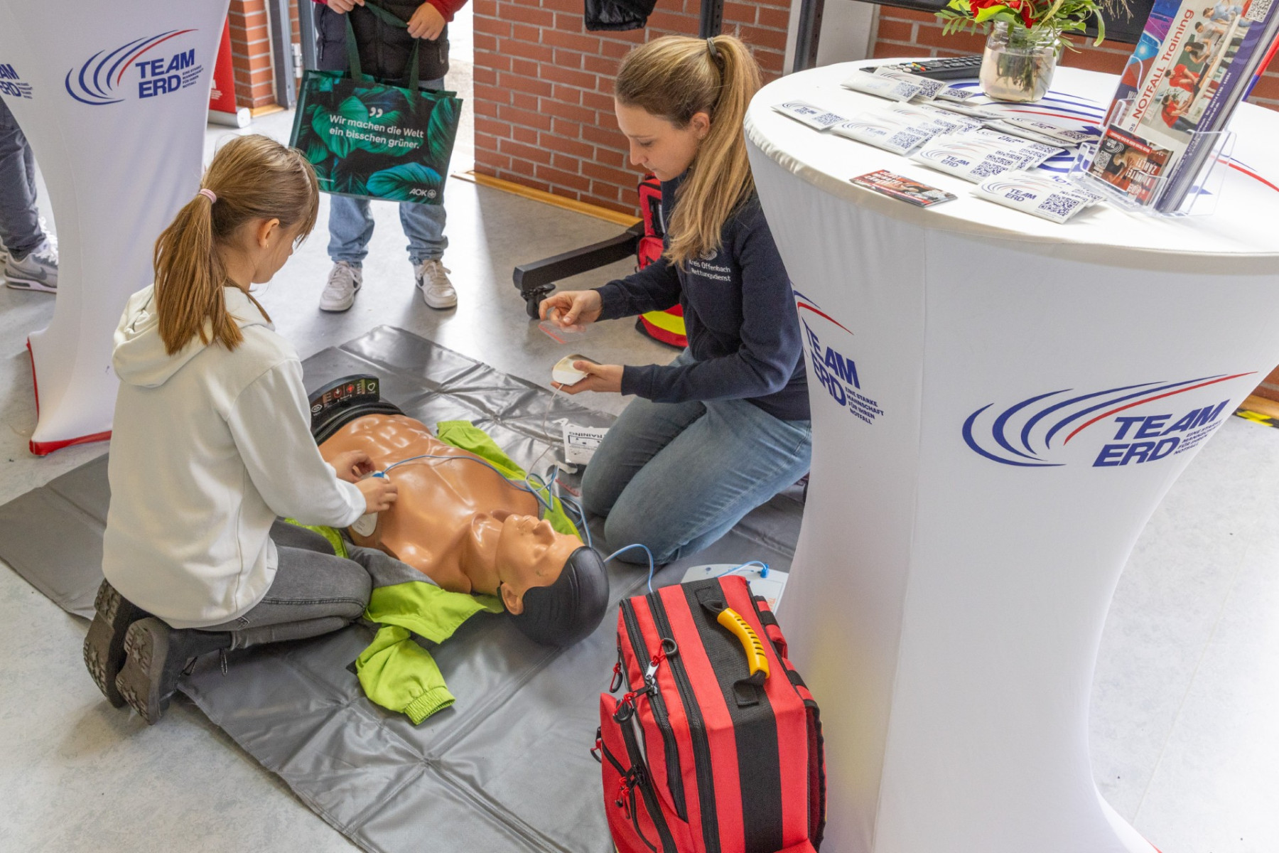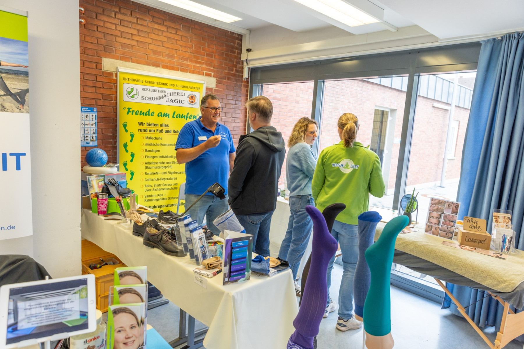 Geboten wurde ein vielfältiges Programm. Die Georg-Kerschensteiner-Schule verwandelte sich in ein lebendiges Zentrum der Gesundheitsförderung. In der verwinkelten Architektur der Schule war mitunter etwas Entdeckerneugier gefragt, um alle Angebote zu finden – doch gerade das trug zur besonderen Atmosphäre bei. An etwa 50 Stände in Aula, Fluren, Klassenräumen und im Außenbereich